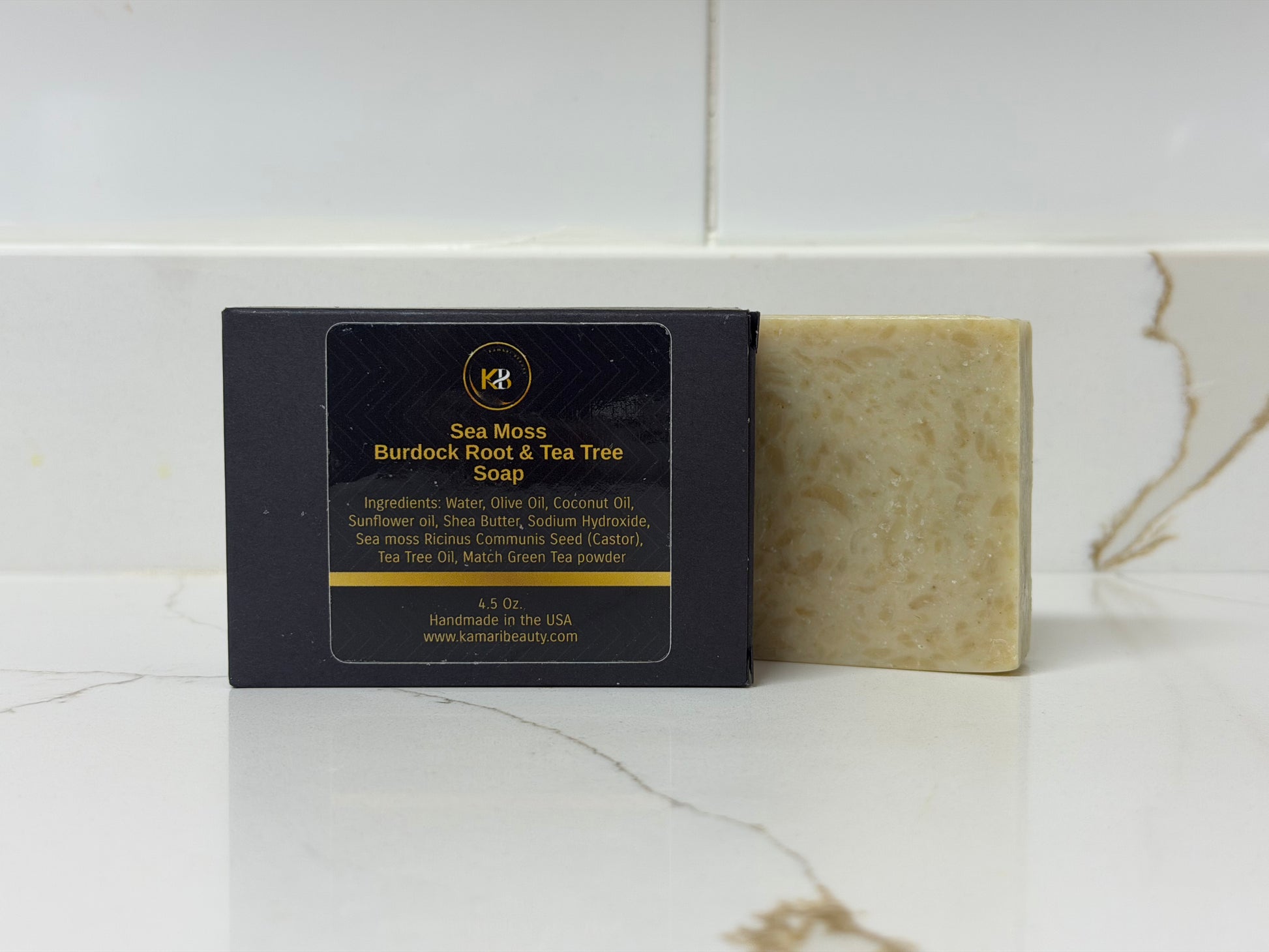 Water, Olive Oil, Coconut Oil, Sunflower Oil, Shea Butter, Sodium Hydroxide*, Sea Moss, Ricinus Communis (Castor) Seed Oil, Tea Tree Essential Oil, Matcha Green Tea Powder